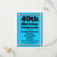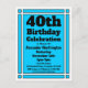 Send out invitations to a 40th birthday celebration with this 40th Bright Blue Birthday Invitation Postcard. Customised with your personal and party information.