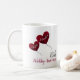 15th Crystal anniversary gift mug with two romantic red heart balloons.