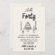 40th Retro Hand Drawn Cake Hello Forty Birthday Invitation