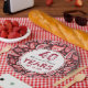 Celebrate the ruby wedding anniversary of your favourite couple with this personalised accessory! A fun retro paisley pattern in elegant shades of red serves as a pretty border. A wedding date, two names, and the words, “40 Years” are featured near the centre and can be customised. Makes a modern twist on a 60's pattern.