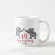 An illustrated 40th wedding anniversary cup in red, gray and white with an elephant couple.