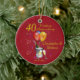 A stylish 40th wedding Anniversary ornament. Featuring a sparkling wine bucket glasses and balloons and confetti all on a ruby coloured background with gold coloured text. Makes a lovely keepsake gift to give to family and friends to congratulate the happy couple on their fortieth wedding anniversary. Can be customise for any year and occasion then personalise by amending the names and date. Background colour can be amended if needed.
