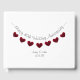 White custom 40th wedding anniversary guest book with rose red bunting.
