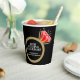 Red and gold ring on a black background modern fun fact and wedding anniversary party paper cups. Personalise these anniversary cups with your own name and fun facts about your couple. Other matching items are also available. © Original graphic ring design by Sarah Trett for www.mylittleeden.com and www.mylittleedenweddings.com on Zazzle.