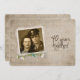 Vow Renewal ceremony invitation for 40th wedding anniversary. Old-fashioned snapshot with pearls and daisy bouquet on music sheet background.