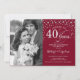 40th Wedding Anniversary with Photo - Red Silver Invitation