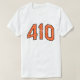 410 (Area Code) t-shirt with orange & black distressed graphic.