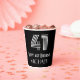 This Roaring Twenties inspired and vintage style birthday themed paper cup design features a large art deco inspired look number “41”, along with the birthday greeting message “Happy 41st Birthday,” and a personalised name. The background is coloured black. Roaring Twenties inspired birthday themed paper cups like this might be used at a birthday party celebrating somebody’s forty first birthday. [~Z0000542]