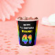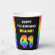 This fun and bold birthday paper cup design features a big number “41“ with a multicolor rainbow spectrum inspired gradient pattern, along with the message “HAPPY 41st BIRTHDAY,”, and a personalised recipient name. Paper cups like this might be used at a birthday party for somebody who is celebrating their 41st birthday. [~Z0000639]