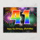 41st Birthday – Fun Fireworks Pattern + Rainbow 41 Postcard