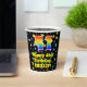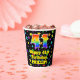 This exciting and joyful birthday-themed paper cup design features a large number “41” having a rainbow spectrum gradient inspired pattern. It also features the message “Happy 41st Birthday,”, and a customisable name. The background features a multicolored pattern having many star shapes with different sizes and colours. Colourful, vibrant paper cups like this might be fun to have at a birthday party/celebration being held to celebrate somebody’s 41st birthday. [~Z0000540]