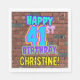 This fun birthday paper napkin design features the message “HAPPY 41ST BIRTHDAY,” having a colourful, vibrant, urban street art and graffiti inspired appearance, in addition to a custom recipient name. The background features a brick wall inspired pattern. Paper napkins like this might be used when celebrating somebody’s 41st birthday. [~Z0000534]