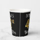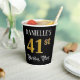 This luxurious and fancy birthday paper cup design features an editable name and the message “41st Birthday Party”. The large number “41st” has an imitation/faux gold-inspired colouring pattern, the words “Birthday Party” are in ornate script-style text, and the background is coloured black by default (although it can be customised). Opulent, elegant paper cups like this might be useful at a birthday celebration being held in celebration of somebody’s forty first birthday. [~Z0000567]