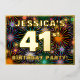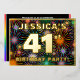 The front of this upbeat and bold forty-first birthday celebration/party foil invitation card design features an editable name, a large number “41st”, the message “BIRTHDAY PARTY!”, and a border. The background of the front has a joyful, multicolored pattern inspired by bursting celebratory fireworks. The back features personalised details about the event, such as the date, time, venue/location, and any other relevant information. Customised invitations like these might be a fun way to invite attendees to a birthday gathering being held to celebrate somebody’s 41st birthday. [~Z0000602]