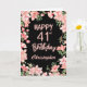 41st Birthday Pink Peach Watercolor Floral Black Birthday Card. For further customisation, please click the "Customise it" button and use our design tool to modify this template.