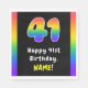 This cheerful and upbeat birthday paper napkin design features the number “41“ having a vibrant rainbow spectrum inspired gradient pattern, along with the message “Happy 41st Birthday,”, and a custom recipient name. Fun birthday themed paper napkins like these might be used at a party in celebration of somebody’s 41st birthday. [~Z0000629]