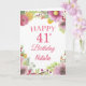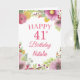 41st Birthday Watercolor Floral Flowers Pink Card