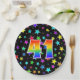 This fun, colourful, and cheerful paper plate design features a large number "41" containing a rainbow spectrum gradient inspired pattern colouring. The background features a colourful pattern of star shapes. Paper plates like this might be fun to use at a celebration being held to honour somebody who is celebrating their forty-first birthday, or a couple’s 41st wedding anniversary, or some other forty-first event. [~Z0000493]