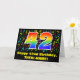 This fun, colorful, and exciting birthday themed greeting card design features a large number "42" with a rainbow spectrum gradient inspired pattern, along with the message "Happy 42nd Birthday,", and a personalized recipient name. The front also features a pattern of various music notes and symbols having a variety of colors and sizes. The inside features a custom birthday greeting message, or could perhaps be cleared and left blank if a message is to be written by hand instead. A customized birthday greeting card like this might be used to acknowledge a musician’s, a music composer’s, a singer’s, or somebody else’s forty-second birthday. [~Z0000426]