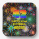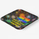 This upbeat and joyful birthday themed paper plate design features a large number “42” with a colourful rainbow spectrum inspired gradient pattern, along with the message “HAPPY 42nd BIRTHDAY,”, and a custom name. The background of the front features an eye-catching, colourful pattern that resembles bursting celebratory fireworks. Exciting birthday themed paper plates like this might be used at a party for somebody who is celebrating their 42nd birthday. [~Z0000604]