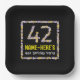 This floral, nature-inspired birthday themed paper plate design has a personalised name, along with the message “42nd Birthday Party!”. The large number “42” plus the border both consist of flower icons. Paper plates like these might be used when celebrating somebody’s forty-second birthday, or some other 42nd event or anniversary. [~Z0000655]
