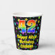 This joyful and colourful birthday paper cup design features a large number “42” having a rainbow spectrum gradient inspired pattern. It also features the message “Happy 42nd Birthday,”, and a personalised name. The background features a multicolored pattern inspired by a field of stars. Colourful, vibrant paper cups like this might be fun to use at a birthday celebration being held to honour somebody’s 42nd birthday. [~Z0000540]