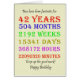 42nd birthday card counting down the years, days, months, hours, and minutes. A card to give pause for thought! Leap years have been taken into account!