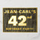 The front of this bold forty-second birthday celebration foil invitation card features a customisable name, a large number “42nd”, the message “BIRTHDAY PARTY!”, and a border, all in foil. There is a rustic, yet sophisticated, faux wood grain look inspired pattern for the background of the front. The back features personalised details about the event, such as the date, time, venue/place, and any other important information. Editable invitations like these might be used to invite guests/attendees to a birthday gathering being held to honour somebody’s 42nd birthday. [~Z0000598]