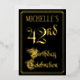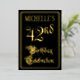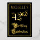 The front of this opulent, ornate, foil forty-second birthday party invitation design features the message “42nd Birthday Celebration” in luxurious script-style text. It also features a customisable name. The background of the front is coloured black by default (although it can be customised to a different colour). The back features personalised details about the event, such as the date, time, location, and any other relevant information. Fancy, luxurious, customisable invitations like these might be used to invite guests to a birthday celebration being held to celebrate somebody’s forty second birthday. [~Z0000589]