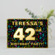 The front of this fun and upbeat forty-second birthday celebration/party foil invitation card design features an editable name, a large number “42nd”, the message “BIRTHDAY PARTY!”, and a border. The background of the front features an exciting, colourful pattern of music notes and symbols. The back features personalised details about the event, such as the date, time, location, and any other relevant information. Customisable invitations like these might be a fun way to invite guests to a birthday gathering/party being held to celebrate somebody’s 42nd birthday. These might be more meaningful if that person is a singer, a songwriter, a composer, a musician, or otherwise loves music. [~Z0000601]