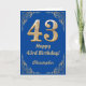 43rd Birthday Blue and Gold Glitter Frame Card