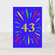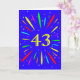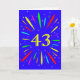 An explosive 43rd birthday card! What a wonderful way to send birthday greetings. The number 43 in bright yellow with an explosion of bright colours and stars.