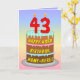 43rd Birthday — Fun Cake & Candles, w/ Custom Name Card