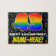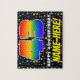 This joyful and bold birthday-themed jigsaw puzzle design features a large number “43” with a multicolored rainbow spectrum inspired gradient pattern, along with the message “HAPPY 43rd BIRTHDAY,”, and a personalised recipient name. The background features an upbeat, multicolored star field pattern. A colourful, customisable birthday puzzle like this might be a fun way to deliver birthday wishes to somebody who is celebrating their forty-third birthday. [~Z0000607]