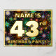 The front of this eye-catching forty-third birthday celebration foil invitation postcard design features a personalised name, a large number “43rd”, the message “BIRTHDAY PARTY!”, and a border. The background of the front features a vibrant, colourful pattern that resembles bursting celebratory fireworks. The back features personalised details about the event, such as the date, time, venue/location, and any other useful information. Editable invitations like these might be a fun way to let guests/attendees know about a birthday party being held in celebration of somebody’s 43rd birthday. [~Z0000609]