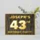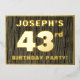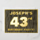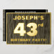 The front of this bold forty-third birthday party foil invitation card features a customisable name, a large number “43rd”, the message “BIRTHDAY PARTY!”, and a border, all in foil. The background of the front features a rustic, yet sophisticated, faux wood grain appearance inspired pattern. The back features personalised details about the event, such as the date, time, location, and any other information that may be useful. Personalised invitations like these might be used to invite guests to a birthday gathering being held to honour somebody’s 43rd birthday. [~Z0000598]