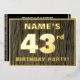 The front of this bold forty-third birthday party foil invitation card features a customisable name, a large number “43rd”, the message “BIRTHDAY PARTY!”, and a border, all in foil. There is a rustic, yet sophisticated, faux wood grain look inspired pattern for the background of the front. The back features personalised details about the event, such as the date, time, place/venue, and any other important information. Customisable invitations like these might be used to invite attendees to a birthday party being held to honour somebody’s 43rd birthday. [~Z0000598]