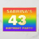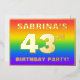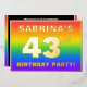 The front of this eye-catching and upbeat forty-third birthday party/celebration foil invitation card design features a personalised name, a large number “43rd”, the message “BIRTHDAY PARTY!”, and a border. The background of the front features a joyful, colourful, rainbow spectrum inspired gradient pattern. The back features personalised details about the event, such as the date, time, location/venue, and any other relevant information. Personalised invitations like these might be a fun way to invite guests to a birthday gathering/party being held in celebration of somebody’s 43rd birthday. [~Z0000599]