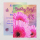 Beautiful pink flowers announce an invitation to a birthday party. A great card for any age. See the whole range of invitations and cards in my store.