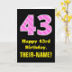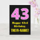 43rd Birthday: Pink Stripes and Hearts "43" + Name Card