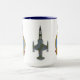High quality 15 oz ceramic mug featuring the crests of 441 Squadron and 1 Canadian Air Group, and a top view of the iconic CF-104. Interior and handle of mug are cobalt blue.