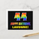 The front of this fun, cheerful, and colourful birthday-themed postcard design features a large number "44" and the message "HAPPY BIRTHDAY,", both coloured with a rainbow spectrum gradient inspired pattern, along with a bold yellow customisable recipient name. The front also features a plain black coloured background. The back of the postcard features an editable birthday greeting message, or could perhaps be cleared and left blank if a message is to be written by hand instead. A cheerful customisable birthday postcard like this might be a fun way of acknowledging somebody’s forty fourth birthday. [~Z0000474]