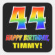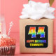 This fun, colourful, and cheerful birthday-themed sticker design features a large number "44" and the message "HAPPY BIRTHDAY,", both coloured with a rainbow spectrum gradient inspired pattern, along with a bold yellow customisable name. The background is coloured black. Fun birthday themed stickers like this could be used when wrapping a gift or present being given to celebrate somebody’s forty fourth birthday, or perhaps might be given out to the attendees at a birthday celebration. [~Z0000480]