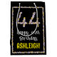 This fun, nature-inspired birthday themed gift bag design has the message “Happy 44th Birthday,” and a personalised recipient name. The large number “44” plus the border consist of flower icons. A floral gift bag like this might be used when wrapping presents or gifts being given to somebody in celebration of their forty-fourth birthday. [~Z0000653]