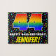 This joyful and colourful birthday jigsaw puzzle design features a large number “44” having a multicolored rainbow spectrum inspired gradient pattern. It also features the message “HAPPY 44th BIRTHDAY,”, and a custom recipient name. The background has an upbeat, multicolored pattern featuring star shapes of various sizes. An exciting, customisable birthday puzzle like this might be used to celebrate somebody’s forty-fourth birthday. [~Z0000607]