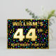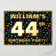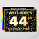 The front of this fun forty-fourth birthday party/celebration foil invitation card design features a customisable name, a large number “44th”, the message “BIRTHDAY PARTY!”, and a border. The background of the front has a vibrant, colourful stars pattern. The back features personalised details about the event, such as the date, time, place/venue, and any other useful information. Customisable invitations like these might be a fun way to invite attendees to a birthday gathering being held to celebrate somebody’s 44th birthday. [~Z0000600]