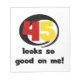 If you or someone you know is turning 45 years old, you'll love our 45 Looks So Good On Me birthday T-shirts, buttons, cards, stickers, mugs, magnets, and other 45th birthday apparel and gifts with a black, red, and yellow text design.
