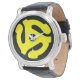 The 45 rpm watch, a very retro cool watch for the vinyl collector or retro fan. From the 50's, 60's, 70's these adapters were used to play vinyl records on turntables. The make a great gift for someone special.