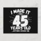 This funny 45th birthday design makes a great sarcastic humour joke or novelty gag gift for a 45 year old birthday theme or surprise 45th birthday party! Features 'I Made it to 45 Years Old...Nothing Scares Me' funny 45th birthday meme that will get lots of laughs from family, friends, party guests & the birthday guy or girl too!