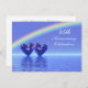 45th silver anniversary invitation with a rainbow and two blue sapphire hearts floating on the water. Customise the sample text on the back with your own information for your event.